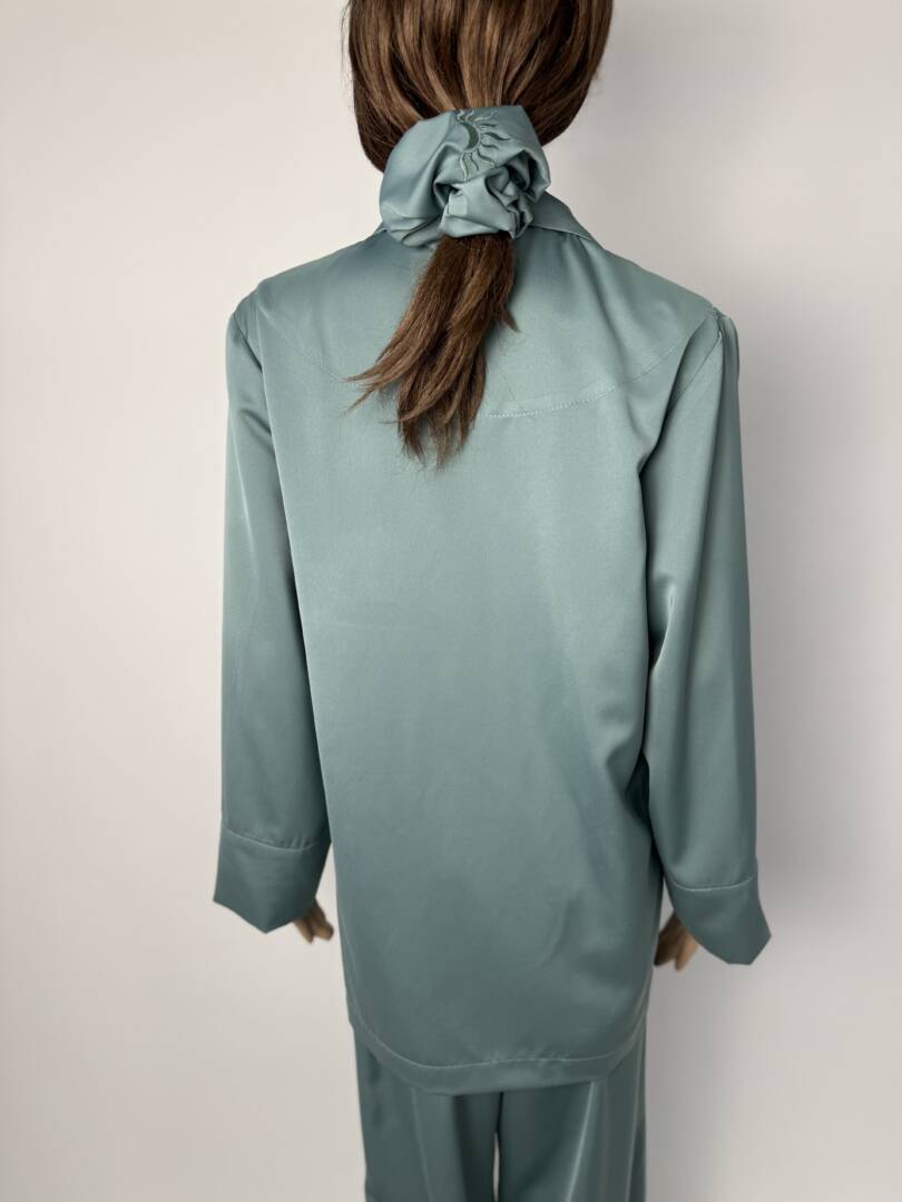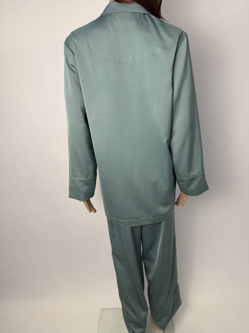 Matching long satin pants with pocket