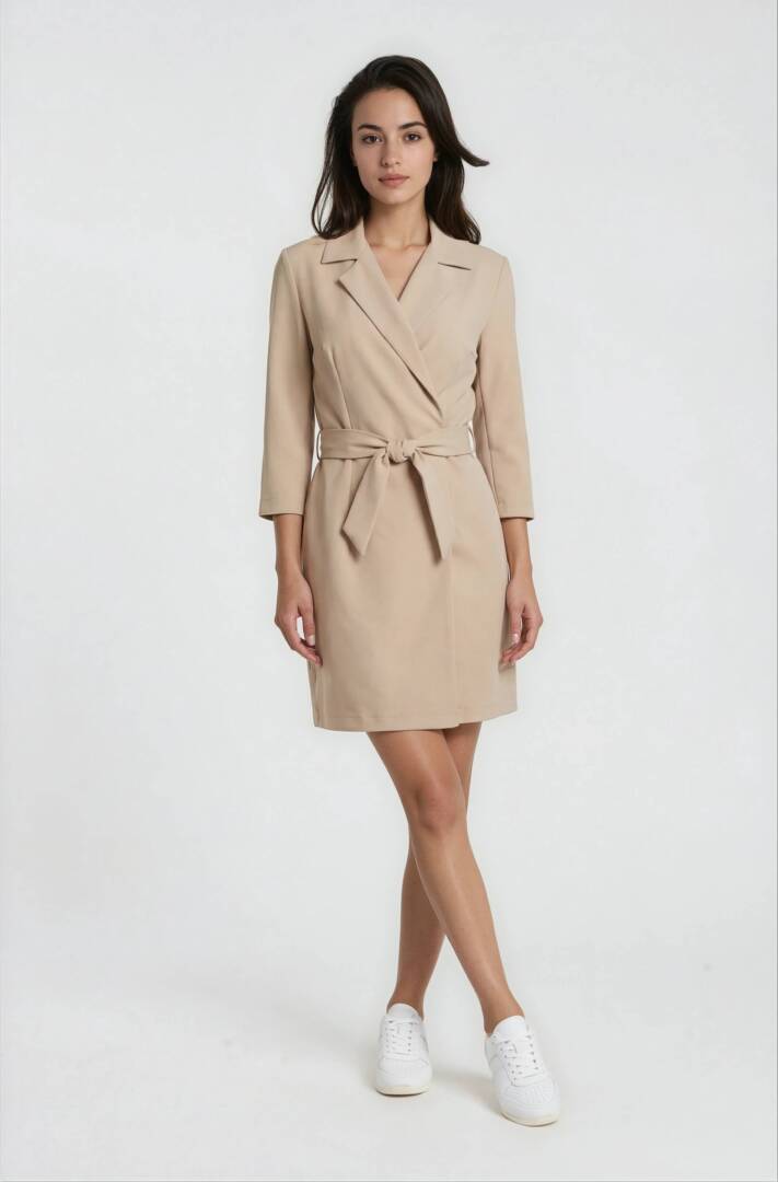 Chic and feminine cut: Straight hem for a flattering silhouette, 7/8 sleeves and structured lapel collar for a sophisticated look.