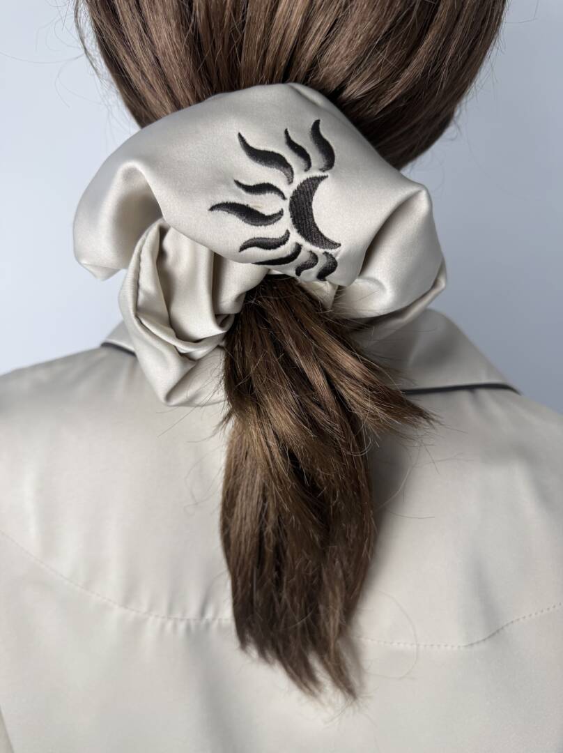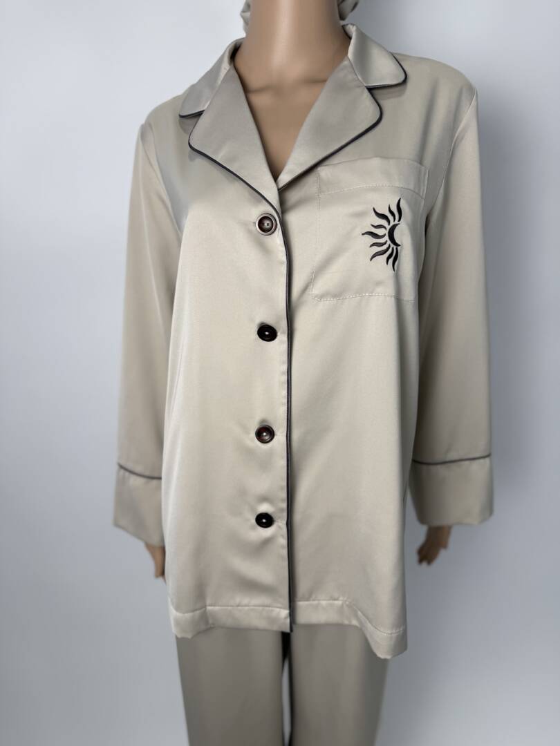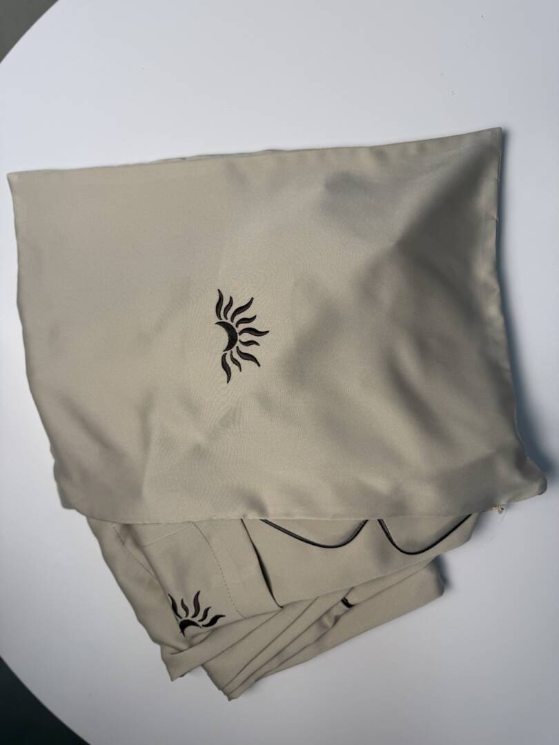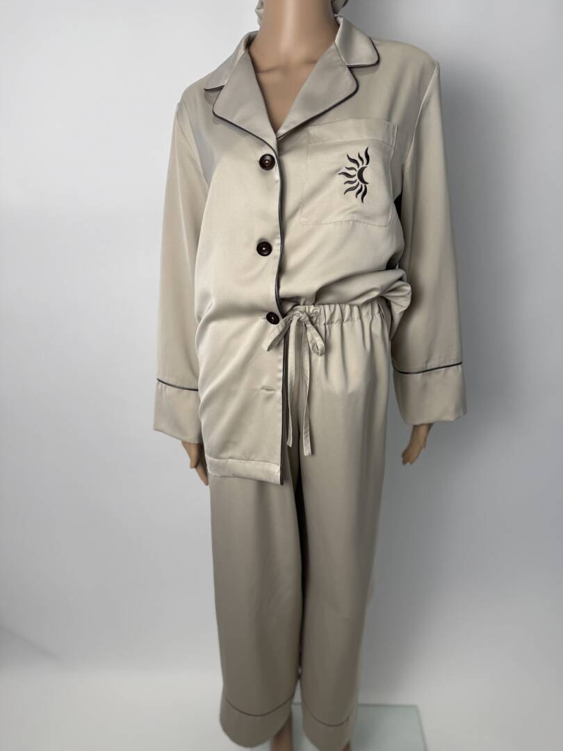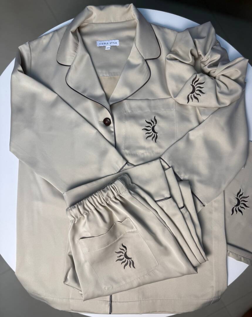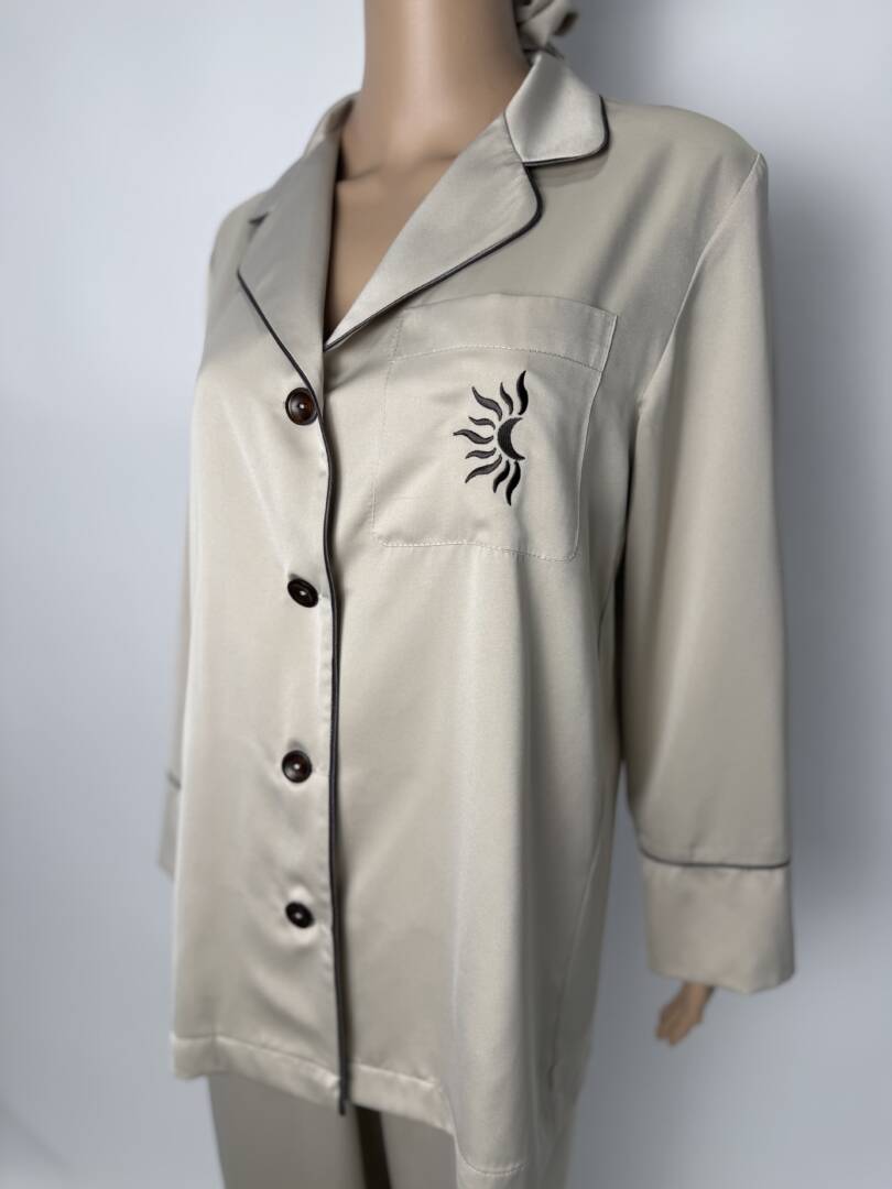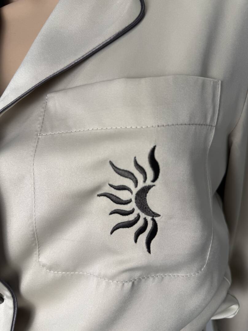 Luxury Satin Pajama Set with Embroidered Moon & Sun Logo