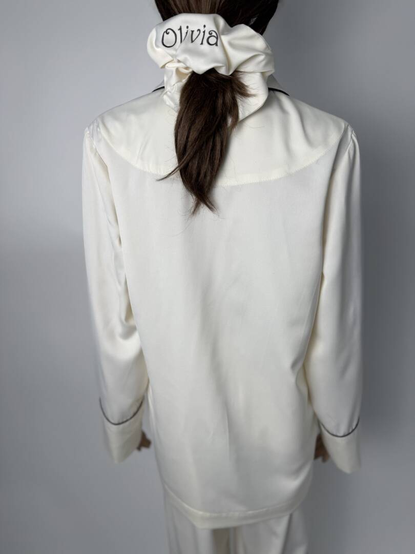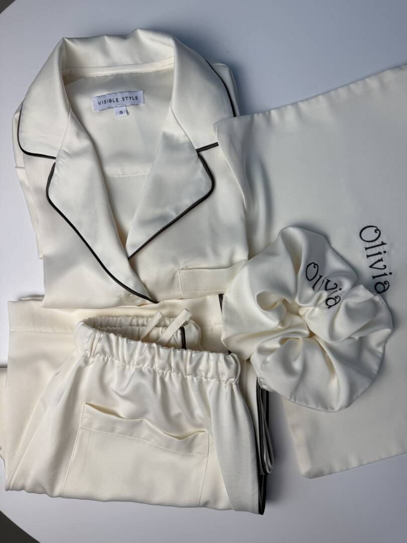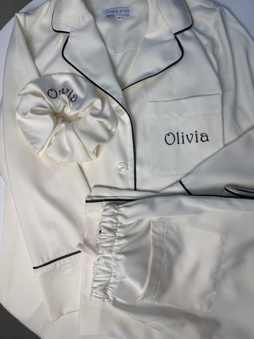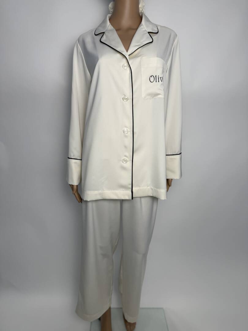 Luxury Satin Pajama Set with Embroidered name | Handmade Premium Sleepwear with Scrunchie & Storage Bag