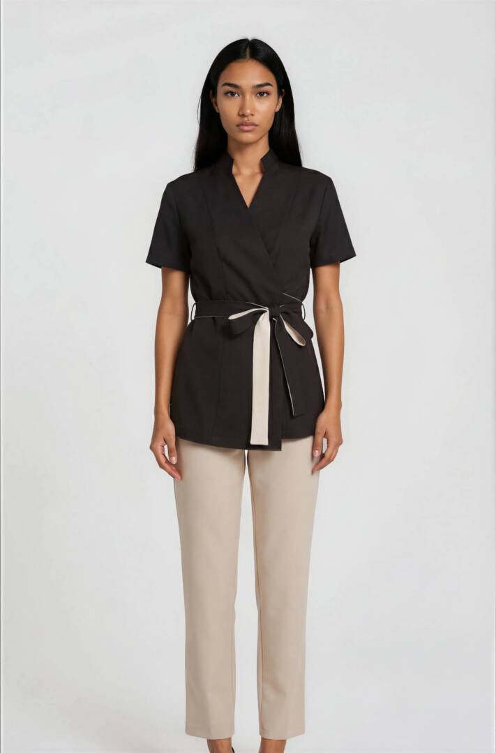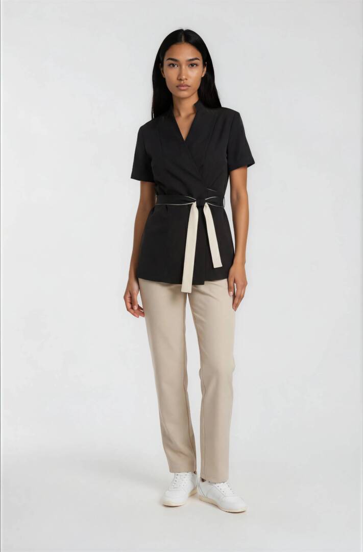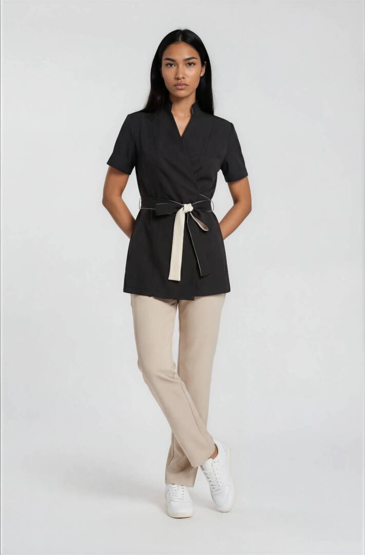 Upgrade your professional wardrobe with this luxury tunic and pants set, specially designed for spa therapists, beauticians, and aesthetic professionals.
