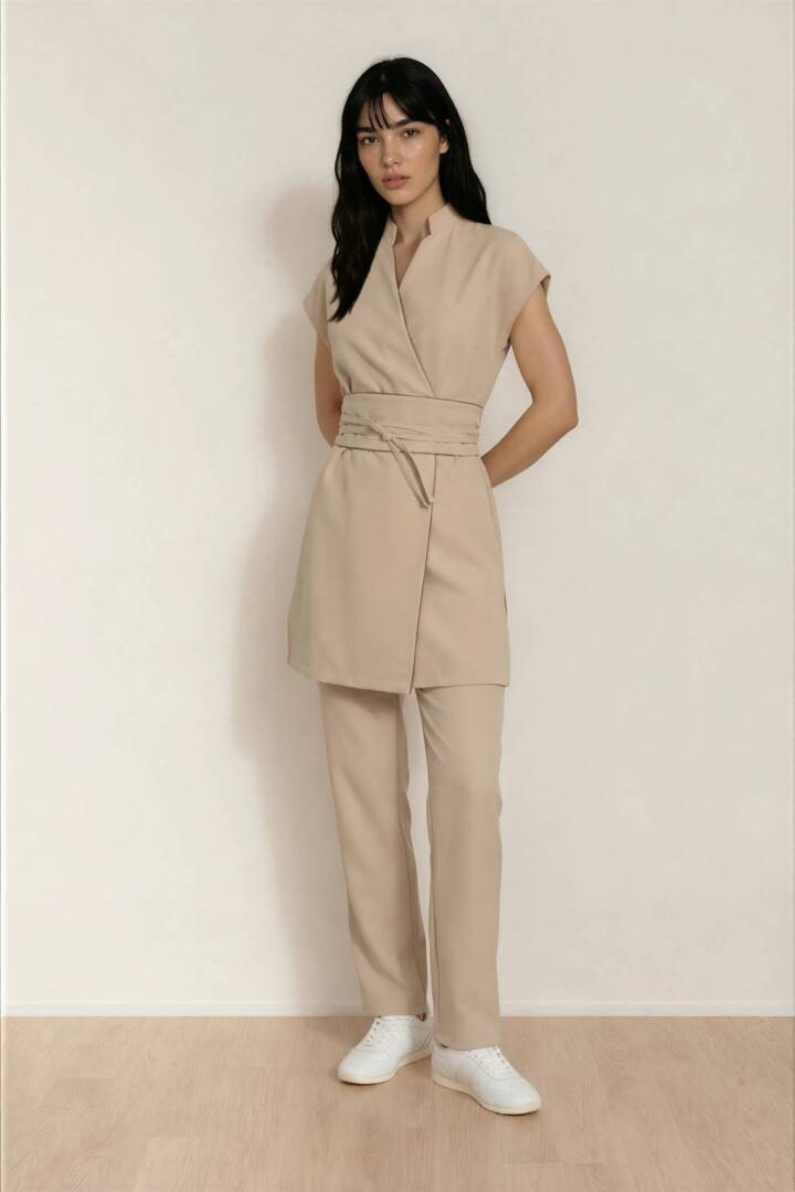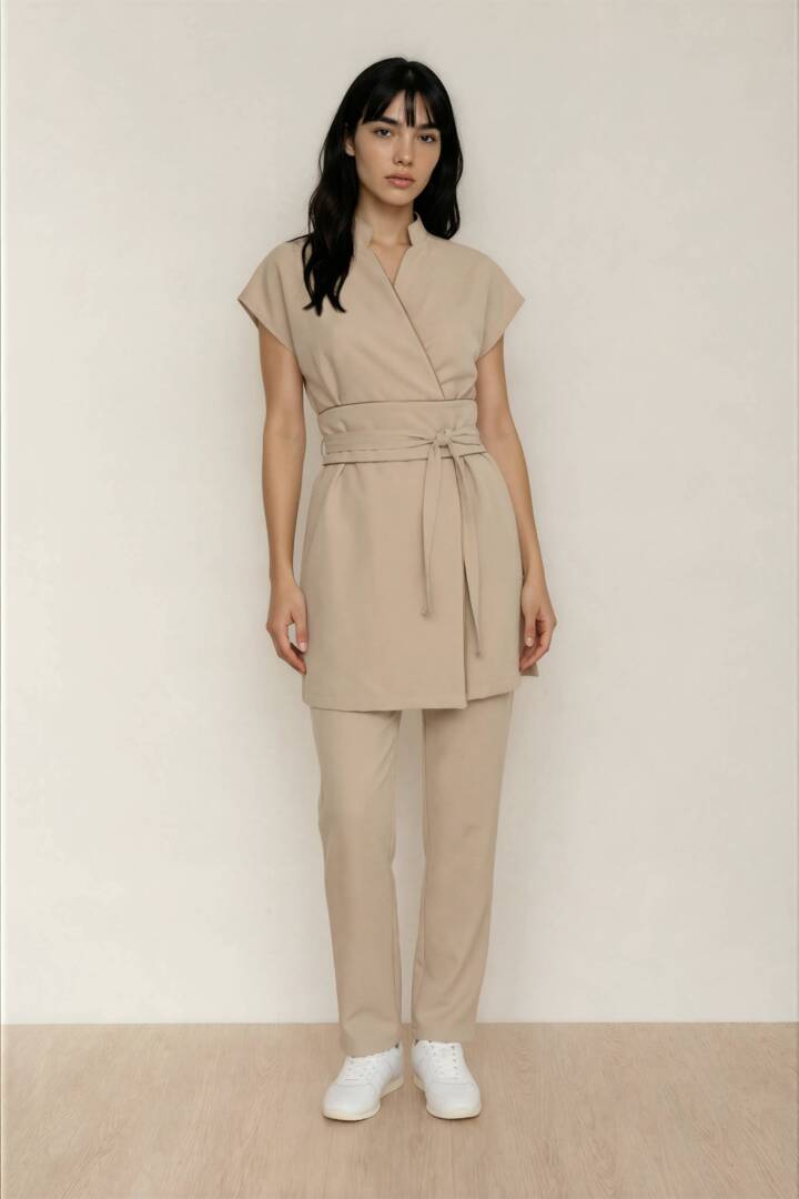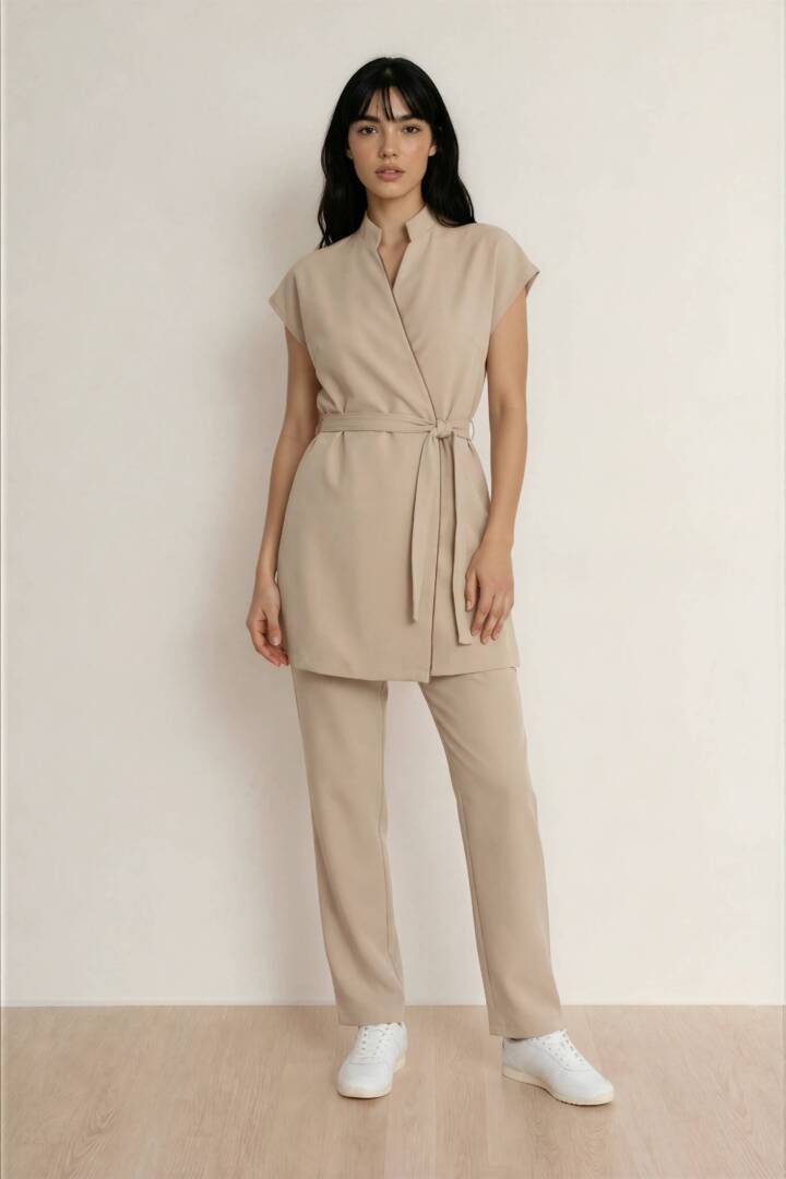 This luxurious tunic and pants set is the perfect choice for any professional looking for a combination of style, comfort and functionality in their workwear.
